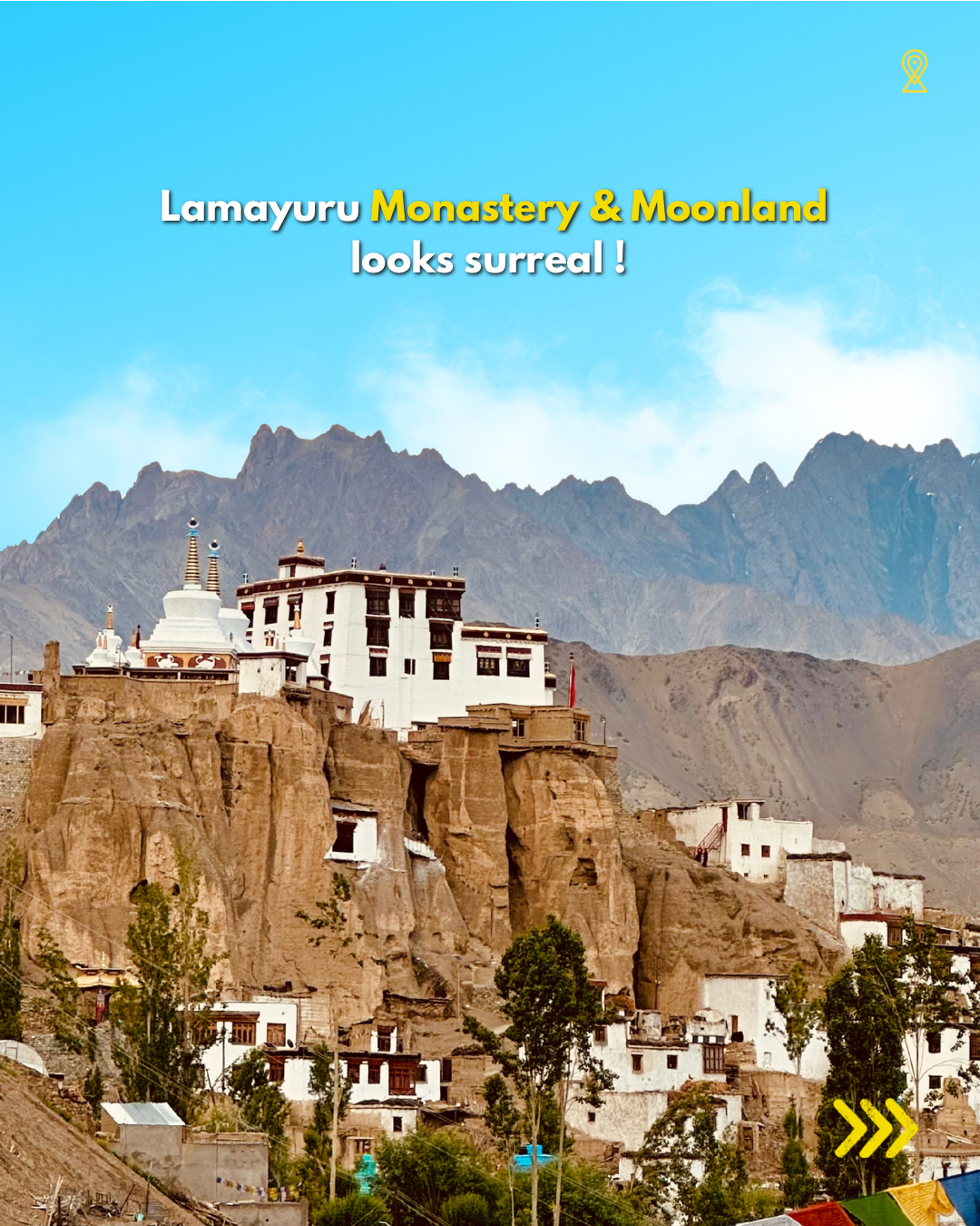 Drive across the high-altitude passes of Namika La and Fotu La, where endless mountain views unfold at every turn. En route, explore the stunning landscapes of Lamayuru Monastery and its surrounding “Moonland” terrain — famous for its unique, crater-like formations that look straight out of another planet.